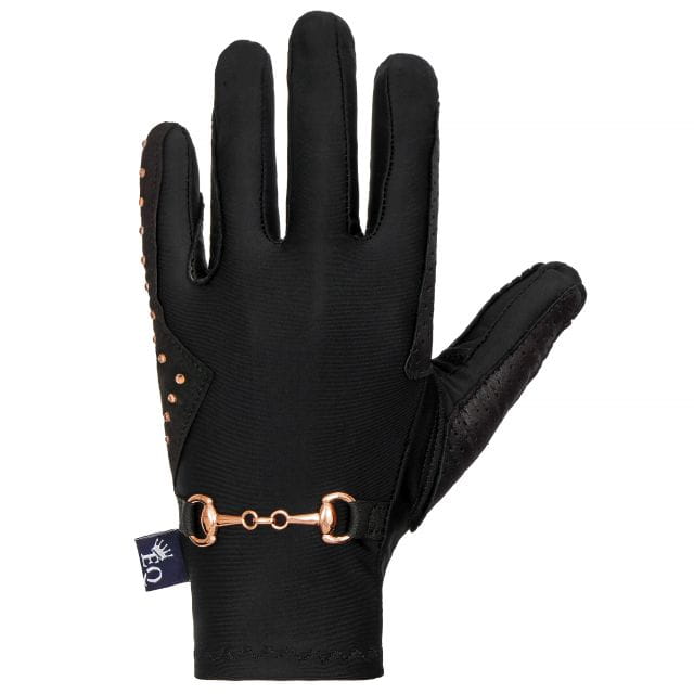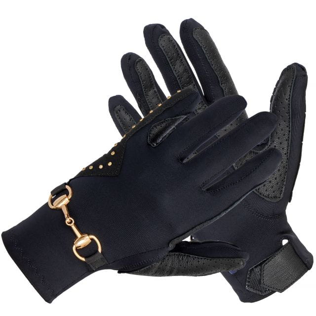 Rękawiczki jeździeckie Equestrian Queen Trangan - czarne z kryształkami i wędzidełkiem