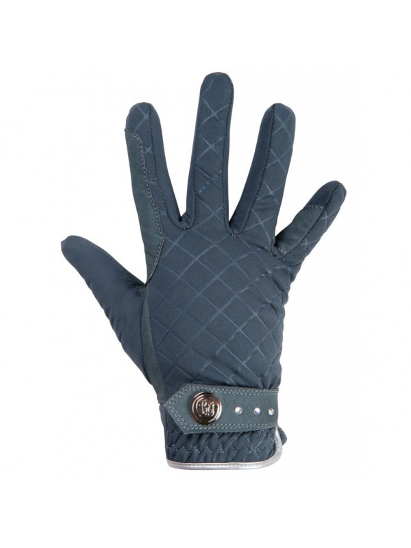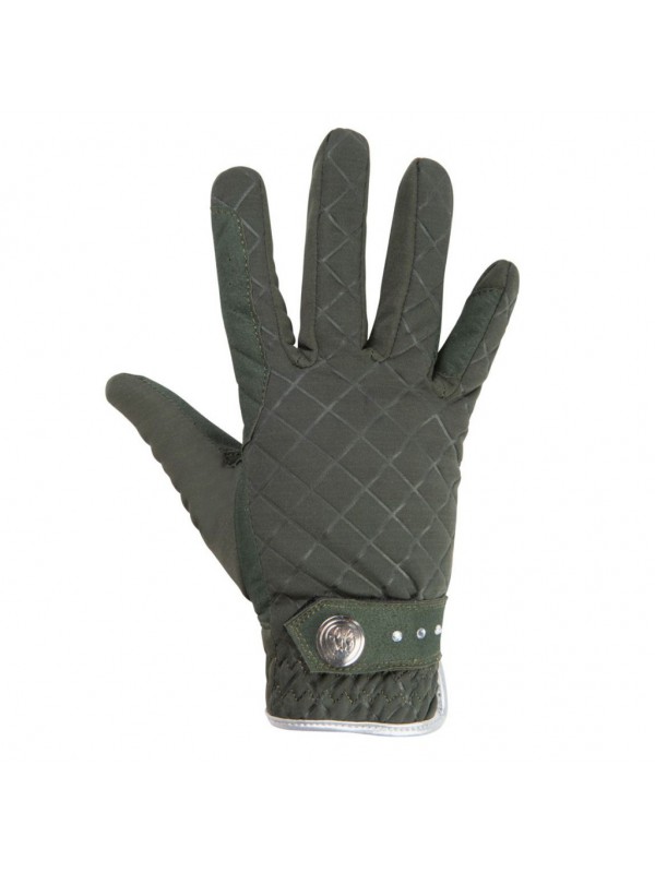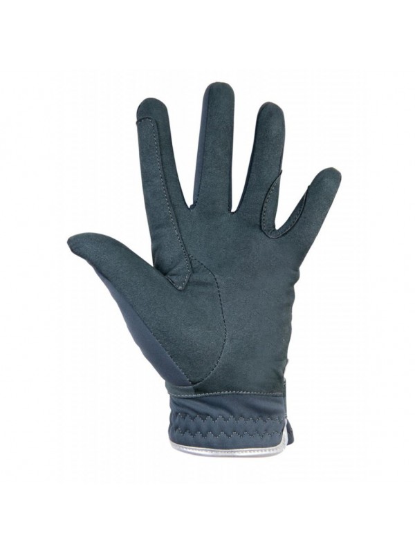 Rękawiczki HKM Glorenza, wykonane z wysokiej jakości materiału, zapewniającego komfort i ciepło podczas użytkowania. Posiadają wzmocnienia w miejscu trzymania wodzy oraz zapięcia na rzep ozdobione imitacją kryształków. Pikowany materiał i srebrna lamówka dodają im eleganckiego wyglądu.