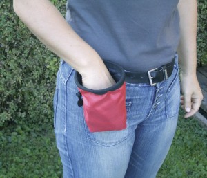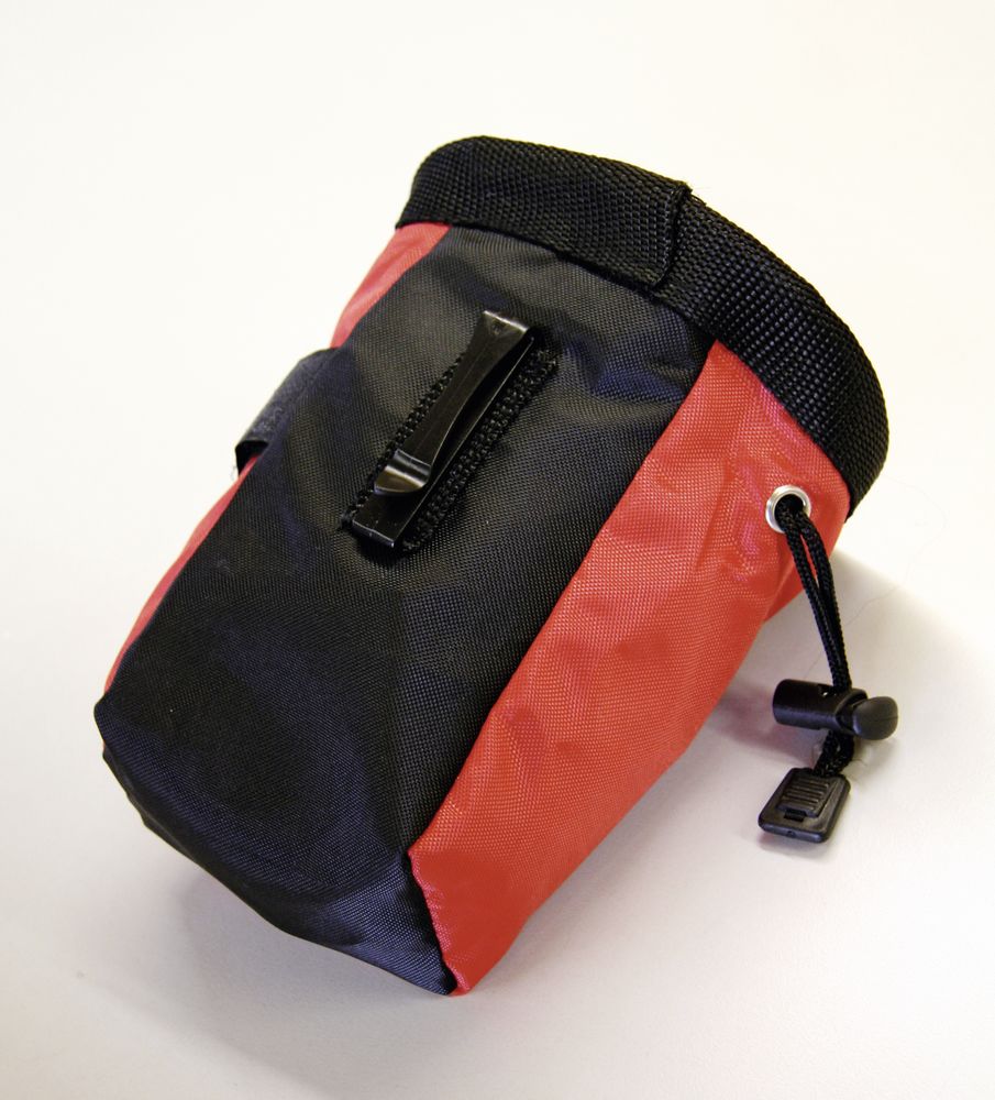 Poręczna torebeczka na przysmaki, idealnie sprawdzi się np. podczas tresury psa. Wykonana z odpornego na zniszczenia nylonu, ściągana przy pomocy sznureczka. Posiada klips dzięki któremu można dopiąć woreczek do spodni.