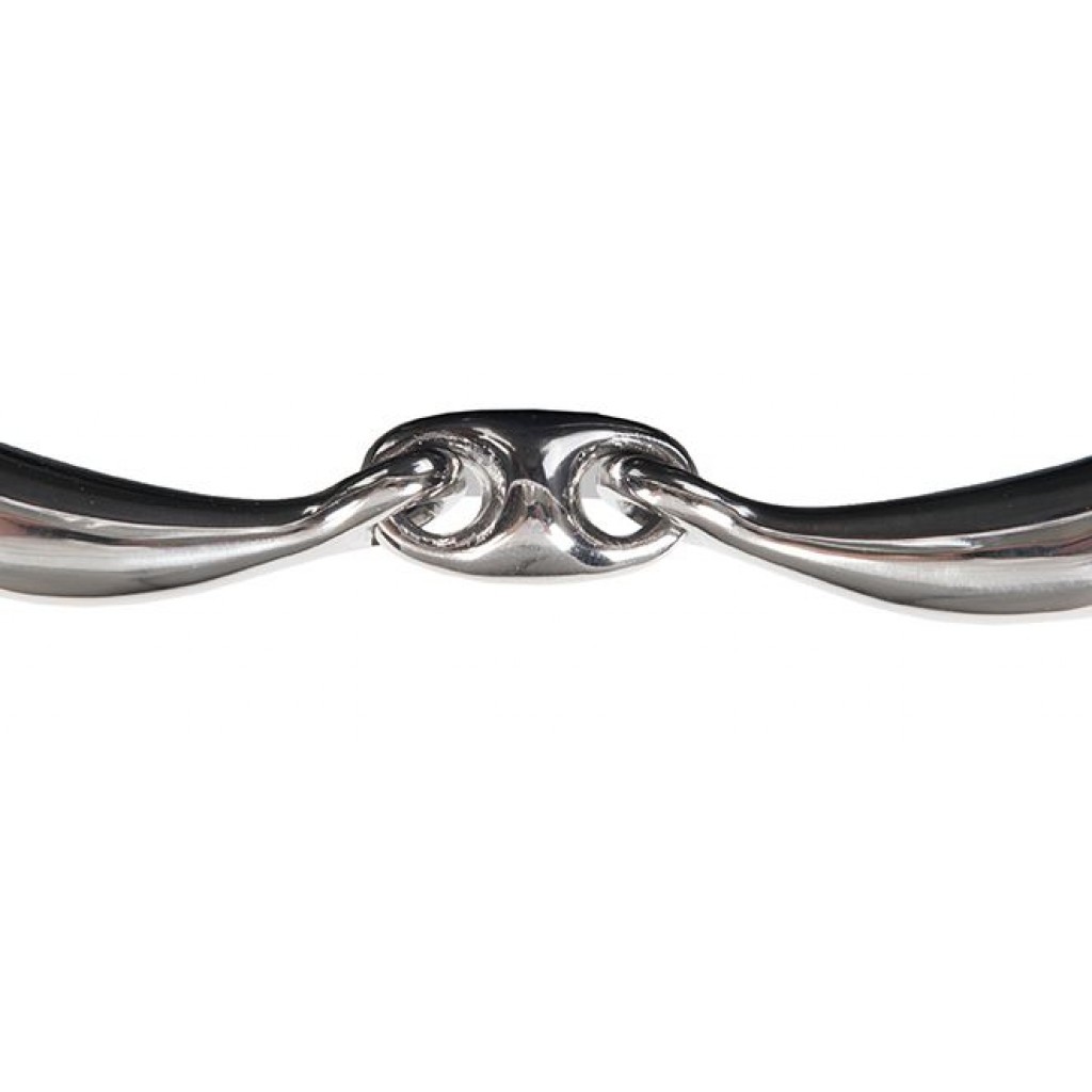 Wędzidło podwójnie łamane, anatomiczne. Wykonane ze stali nierdzewnej, anatomiczny kształt pozwala na równomierny i delikatny nacisk na pysk konia.