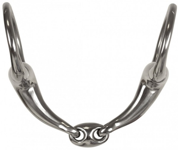 Anatomiczne wędzidło oliwkowe z łącznikiem, wykonane ze stali nierdzewnej.