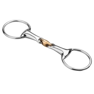 Wędzidło wykonane ze stali szlachetnej. Bardzo lekkie ponieważ puste wewnątrz. Miedziany łącznik, dzięki reakcji chemicznej wynikającej z połączenia dwóch metali, zachęca do żucia i przyjęcia kontaktu. Wędzidło oliwkowe posiada zaokrąglone końcówki i nie kaleczy kącików pyska konia.