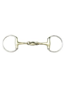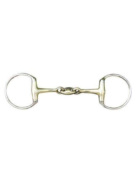 Wędzidło oliwkowe podwójnie łamane wykonane z argentanu ( niemieckie srebro ) w kolorze złotym, kółka ze stali szlachetnej w kolorze srebrnym.