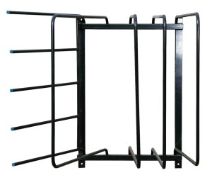 Solidny wieszak z obrotowymi ramionami do powieszenia czapraków lub derek dla konia. Wykonany z metalowych rurek malowanych proszkowo. Jedno ramię składa się z 5ciu prętów do wieszania np. czapraków, pozostałe ramiona pomieszczą 4 derki lub 8 czapraków. Praktyczny wieszak, który wysuszy i pomieści sporo sprzętu nie zajmując dużo miejsca. W miarę potrzeby można go złożyć.