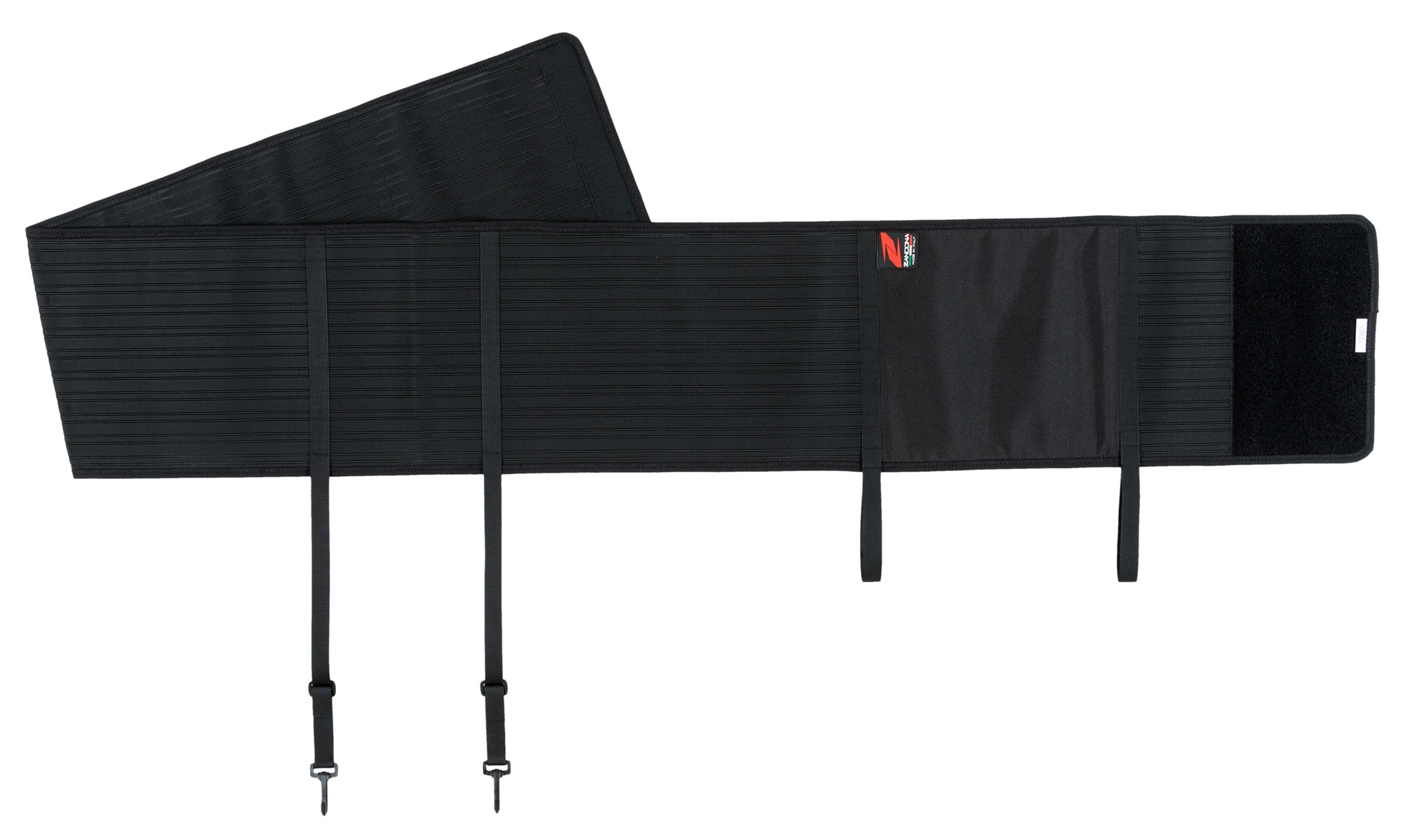Elastyczny pas stworzony, aby chronić miejsca narażone na otarcia od butów i ostróg jeźdźca. Zabezpiecza wrażliwy obszar, jakim jest okolica popręgu na kłodzie konia, ale również chroni już uszkodzoną skórę. Wykonany jest z wysokiej jakości, “oddychającej” tkaniny dzięki czemu skóra szybciej się regeneruje. W miejscach kontaktu stóp jeźdźca posiada dodatkowe wzmocnienia, dzięki czemu chroni przed pogłębieniem urazu, umożliwiając dalszy trening. Pas jest zapinany na rzep oraz wyposażony w paski ułatwiające mocowanie do siodła i zapobiegające przesuwaniu się pasa.