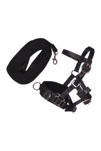 Lonża wykonana jest z przyjemnej w dotyku taśmy parcianej o długości 4 metrów, zakończona karabińczykiem zwykłym.